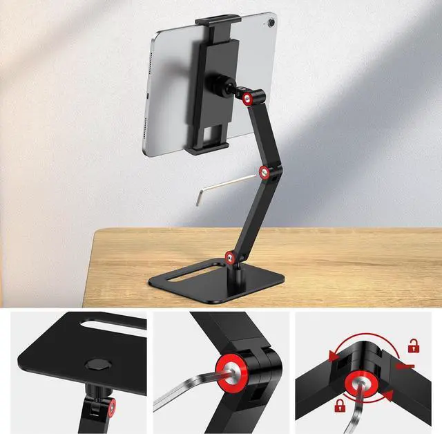 Space-Saving & Easy Installation Say goodbye to cluttered surfaces and tangled cords! Our foldable tablet stand features a widened base for enhanced stability while taking up minimal space on your desk or countertop. Plus, the hassle-free installation process ensures you can set it up in seconds, allowing you to enjoy its benefits without any delay.