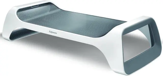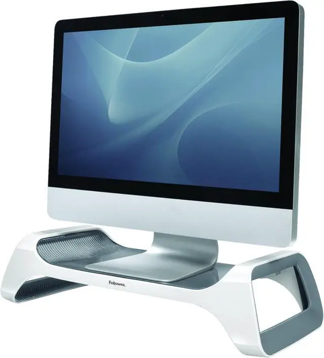 Innovative design elevates monitor 3-3/8" above desktop for enhanced viewing comfort^Helps reduce neck strain and shoulder tension^Supports monitors up to 25 lbs. ^No tools required for assembly^Look for coordinating I-Spire Series products from Fellowes
