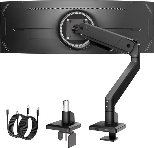 Streamline Desktop Space: monTEK single monitor mount has a compact base to save space, with an elevated ultrawide monitor arm that lifts your screen to free up area. It features integrated cable management and USB 3.0 ports for easy charging of smartphones, game gear and data transfer, keeping your workspace sleek, spacious, clutter-free.