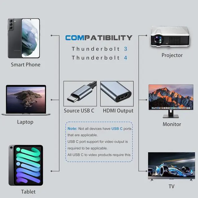Wide ApplicationUSBC to HDMI adapter can transfer video from a laptops tablet or smartphone to a monitor, TV or projector for multi-screen display. (not from HDMI to usb c)