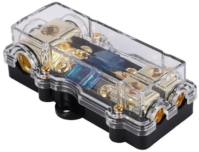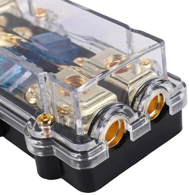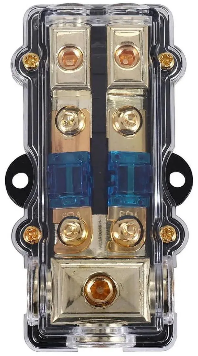• Power Distribution Block (2 Way) 4/8 AWG Gauge Fuse Holder Distribution Block 4 Gauge in to (2) 8 Gauge Out,1 x Power Distribution Block