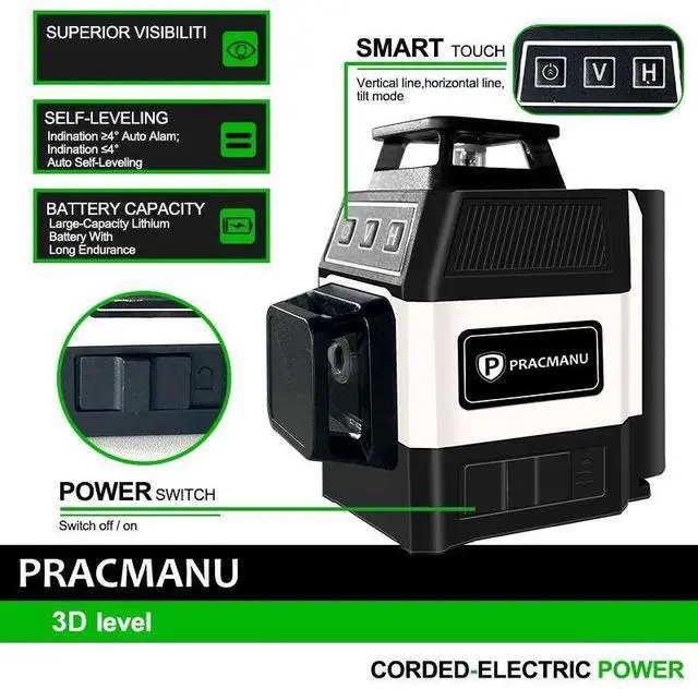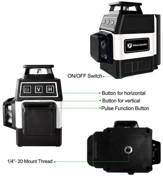 Pracmanu Mini Laser Level 12 Lines 3D level Self-Leveling 36
