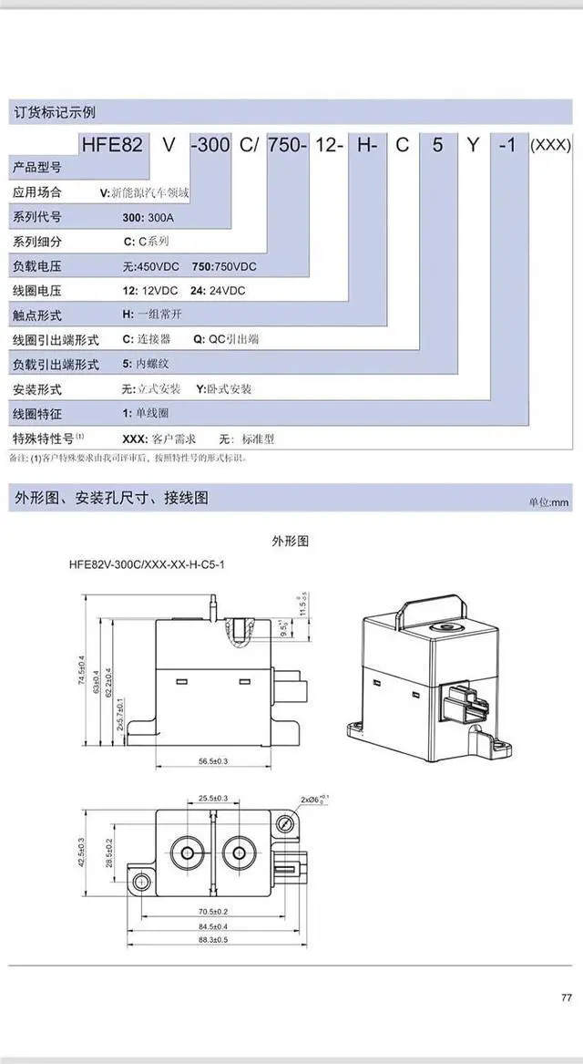 HFE82V-300C 750-12-H-C5-1 High Voltage DC Relay HFE82V-300C