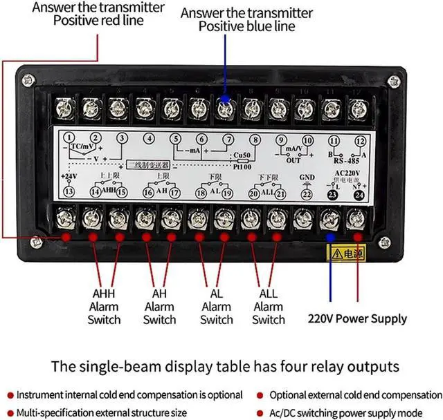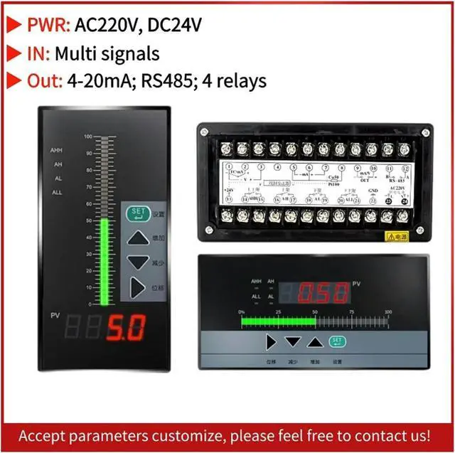 • Intelligent Digital Display Temperature Automatic Liquid Level Controller RS485 4 Relay Alarms Tank Level Control Instrument(4 Relay Out DC24V)