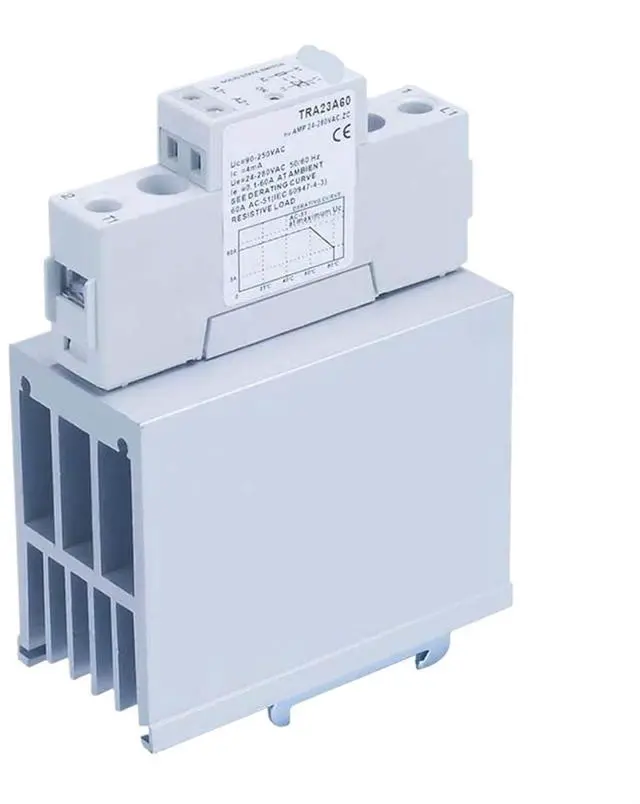 TRA23A60H 60A Heat Sink Solid State Relay AC AC 90-250VAC in Out 24-280VAC Voltage Control Relay Board& Module Din Rail