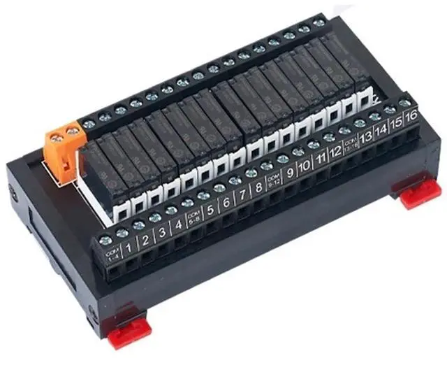 • SK Series Relay Module Control Board Amplifier DIN Rail Pluggable Relay 4/6/8/10/12/16 Channel 5V/12V/24V NPN/PNP Compatible(12V DC,SK1610)