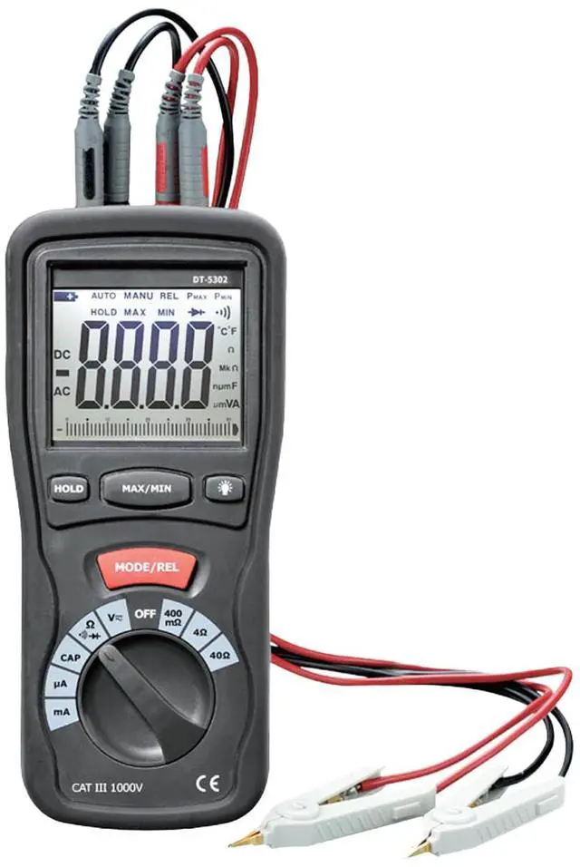 • DT-5302 DC Low Resistance Tester Resistance Meter 4-Wire Milliohm Meter with 4-Wire Test Clips