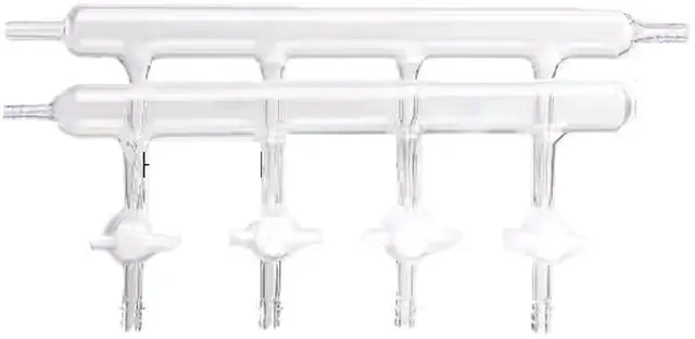 • Dual Bank Glass Vacuum Gas Distributor Manifold with PTFE Stopcocks on The Ports (4-Port)