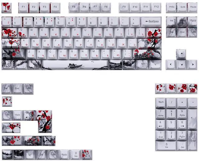 • OEM Keycaps 128Keys Blossom OEM Keycaps Thick Keycaps for 87/96/104/108 for Mechanical Keyboards Switches 7 Languages