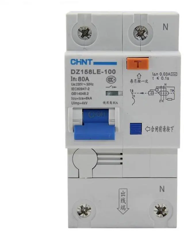 DZ158LE-100 80A 100A Residual Current Circuit Breaker RCBO