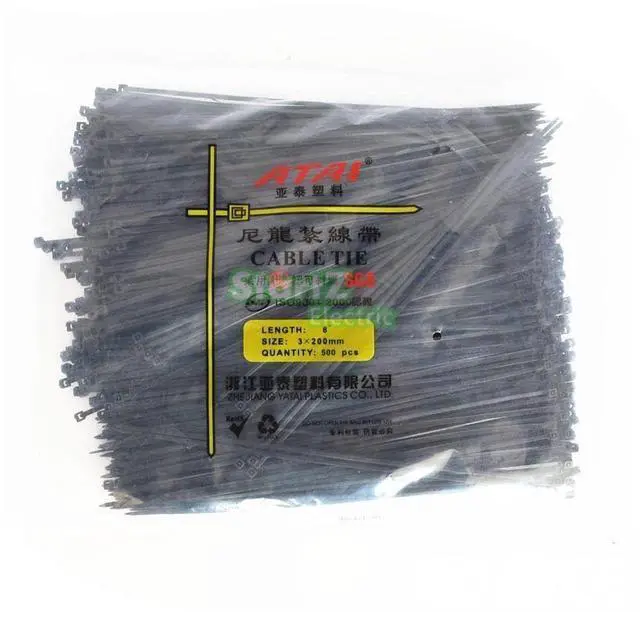 • 500PCS 3X200mm (8'' Inch) Black Self Lock Plastic Nylon Cable Ties Zip Wire