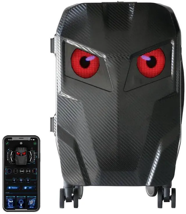 • LED Suitcase, 48x48 Full Color Customizable Display with App Control, Impact Proof ABS Hard PC Case, Spacious Interior with Tie Down Straps,