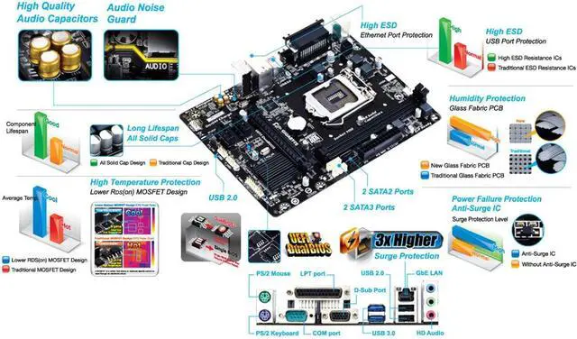 • Motherboard Fit forGigabyte GA-H81M-DS2 for 4th Gen forIntel LGA 1150 with I/O Back Plate Shield - Industrial PackagedNon-Original Packaging