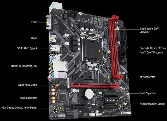 Motherboard Fit forGigabyte B365M H for 8/9th Gen forIntel LGA 1151 with I/O Back Plate Shield - Industrial PackagedNon-Original Packaging