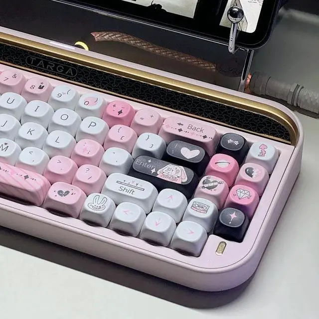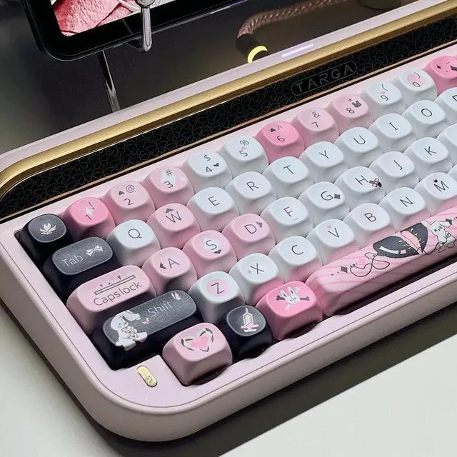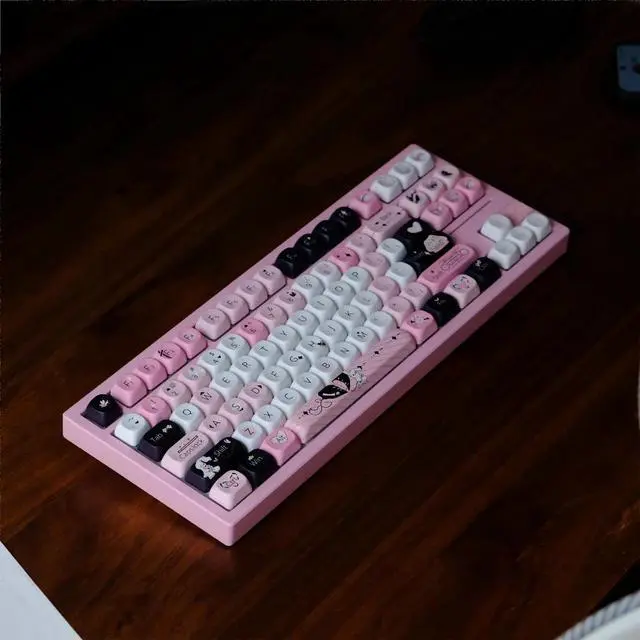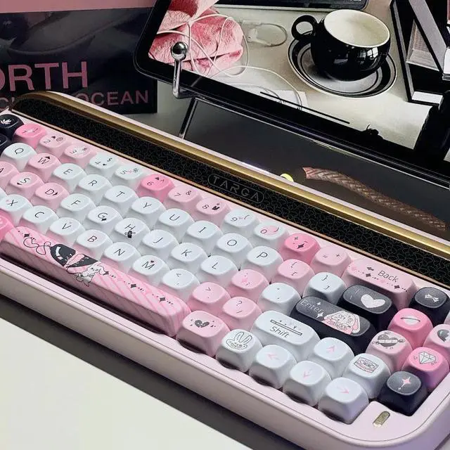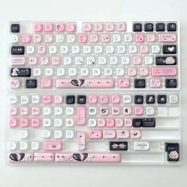 • QX OTT Black Pink Keycaps for Mechanical Keyboard MOA Height 5 Sides Dye Sublimation Cute Girl Gift 7U Gaming PC GK61 Anne Pro2