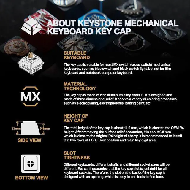 • Mechanical Keyboard Artisan Keycap Keystone 1 pc Monster Hunter Theme Zinc Aluminum Alloy Metal R4 Height Customize DIY Game