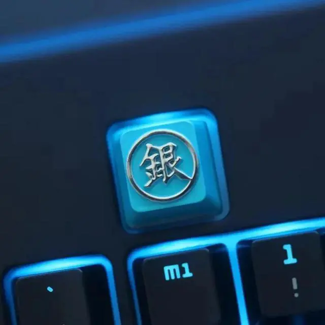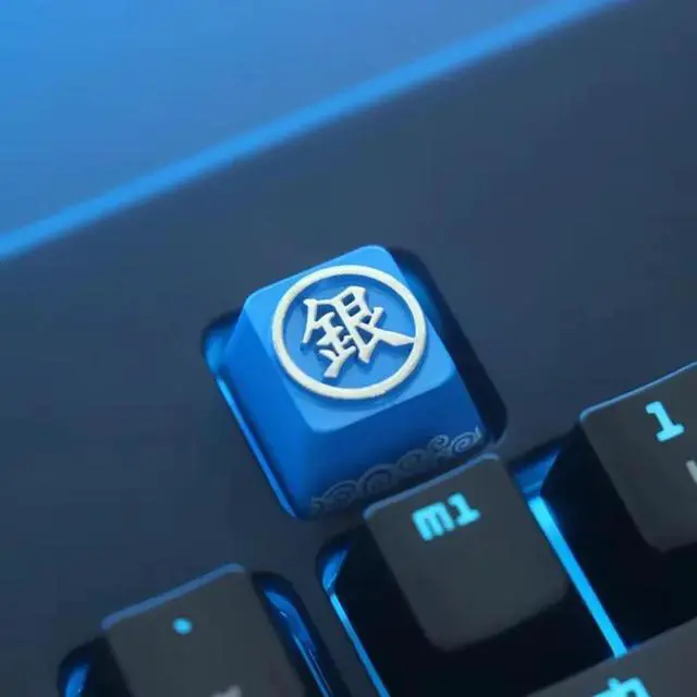 • Keystone Artisan Keycap for Mechanical Keyboard GINTAMA Anime Theme Blue Color Zinc Aluminum Alloy Metal Customize DIY AULA F75