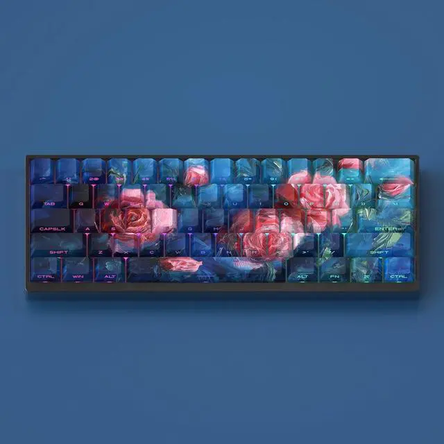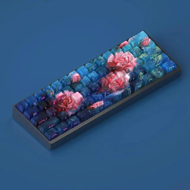 • 130 Keys Keycaps PBT Dye Sub Cherry Rose Blue Side Print Backlight Through for Mechanical Keyboard AULA F75 Ajazz AK820 Pro Game