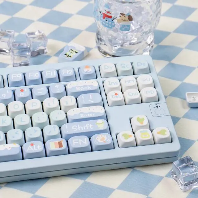 • 140 Keys MOA Keycaps Ice Cream Blue PBT Dye Sublimation Cherry Height for Mechanical Keyboard AULA F75 Ajazz Ak820 Pro Game PC