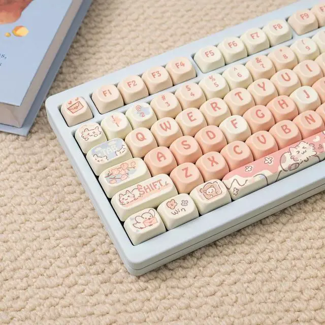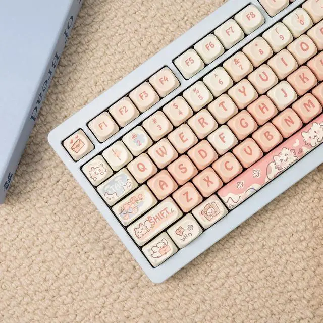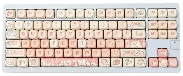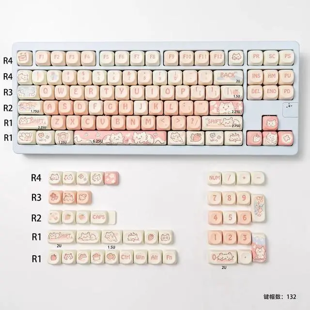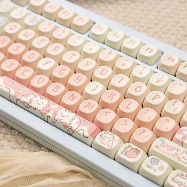 • 132 Keys MOA Keycaps Cat Strawberry Pink PBT Dye Sublimation Cute Girl for AULA F75 Ajazz Mechanical Keyboard Anne Pro2 GK61 PC