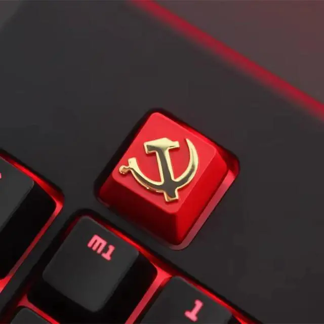 • KeyStone Artisan Keycap Soviet Theme Red Color Zinc Aluminum Alloy Metal for Mechanical Keyboard R4 Height Cherry MX DIY Game