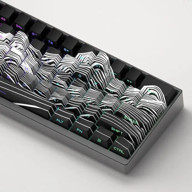 • 130 Keys Mountain Keycaps PBT Dye Sublimation Cherry Side Print White Black Backlight Mechanical Keyboard AULA F75 Anne Pro GK61