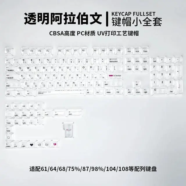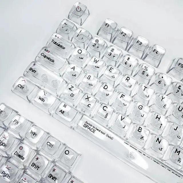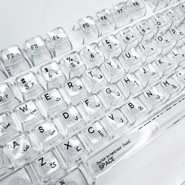 • 132 Keys Transparent Keycaps Arabic CBSA Height PC Material UV Print Black for Mechanical Keyboard AULA F75 Ajazz Game Wooting