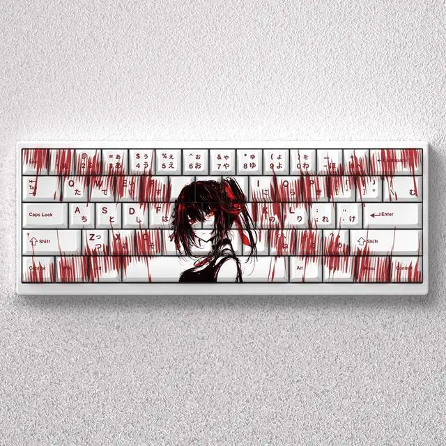 • PBT Keycaps for Mechanical Keyboard 73 Keys Cherry Height Dye Sublimation Tokisaki Kurumi Japanese 60 65 68 Layout Anne Pro 2
