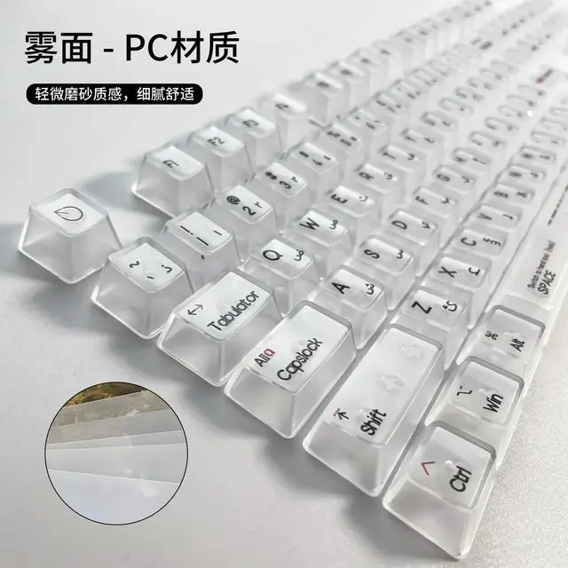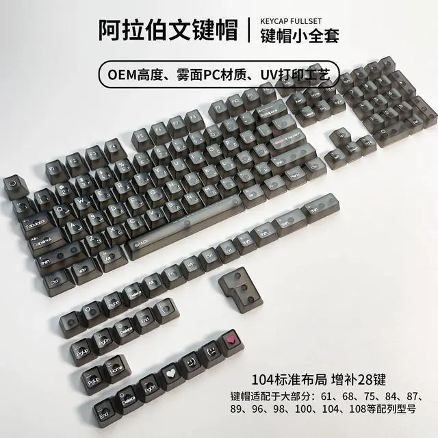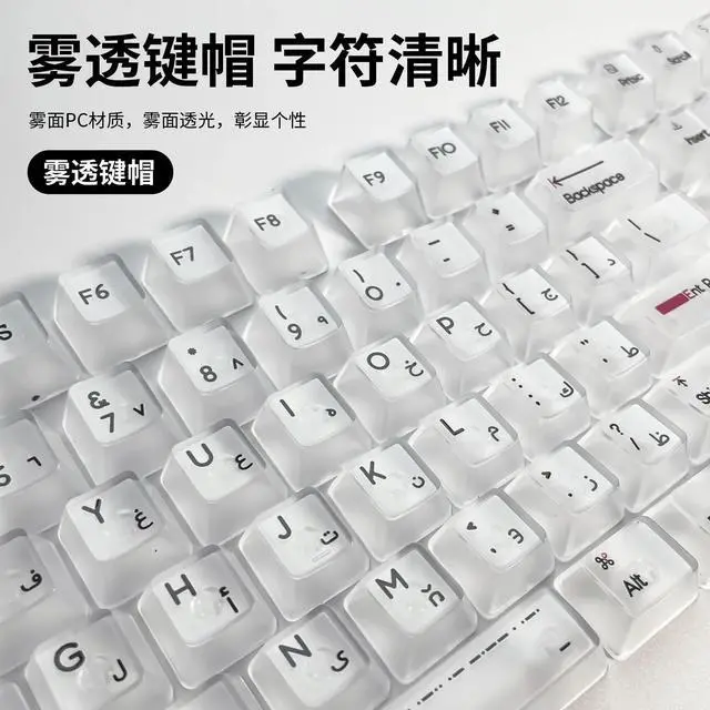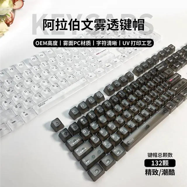 • 132 Keys Arabic Keycaps Fog Transparent PC Material OEM Height UV for Mechanical Keyboard AULA F75 Ajazz Ak820pro Game Mad 60he