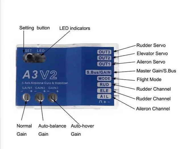 • 3 Axis Gyro A3 V2 Aeroplane Flight Controller Stabilizer for RC Quadcopter Multicopter Airplane Fixed-wing Copter
