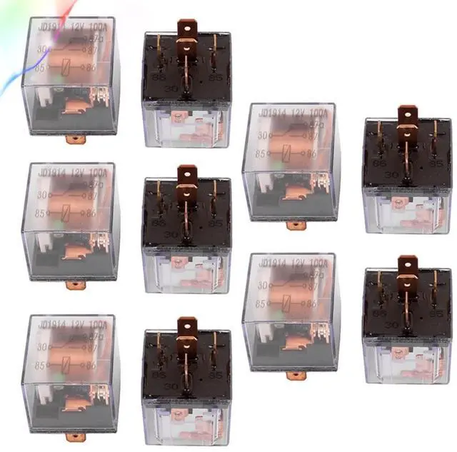 • DC 12V 100A 5 Pins SPDT Clear Shell Green Light Car Automotive Alarm Relay 10pcs