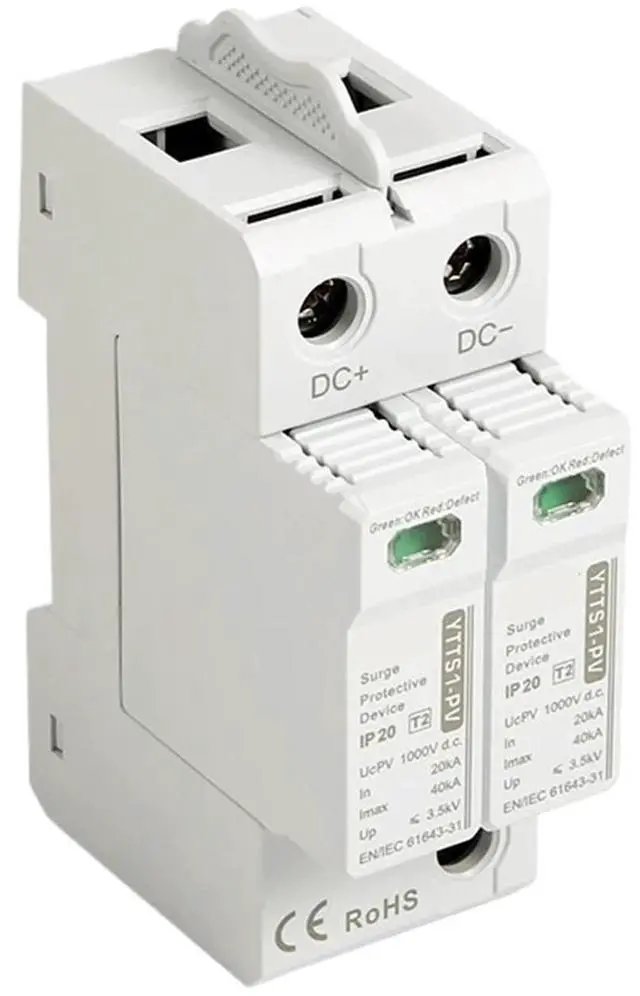 • YTTS1-PV 2P Solar PV Low Voltage Din Rail DC 600V 1000V 20KA-40KA Surge Arrester Protector SPD