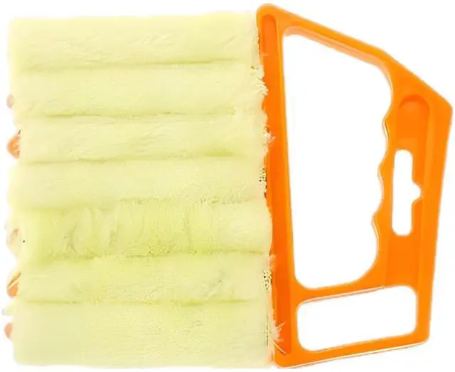 • Yellow Household Cleaning Tool, Hand-Held Mini Cleaner 5.3 X 6.3 in / 13.5 X 16 Cm, Brush 7 Teeth, Shutters Blinds, Air Conditioner Fan Window, Duster