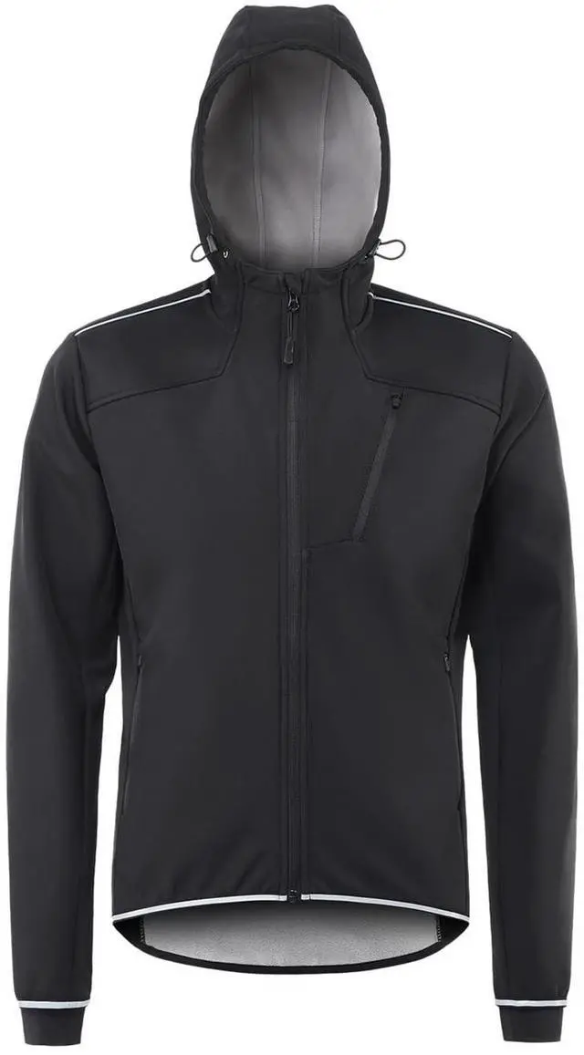 • Thermal Jacket, Windproof Hooded Coat Riding Fleece Lined with Reflective Design Warm Pockets for Cycling Running Mountain Biking Cold Weather Gear (EU Size M)