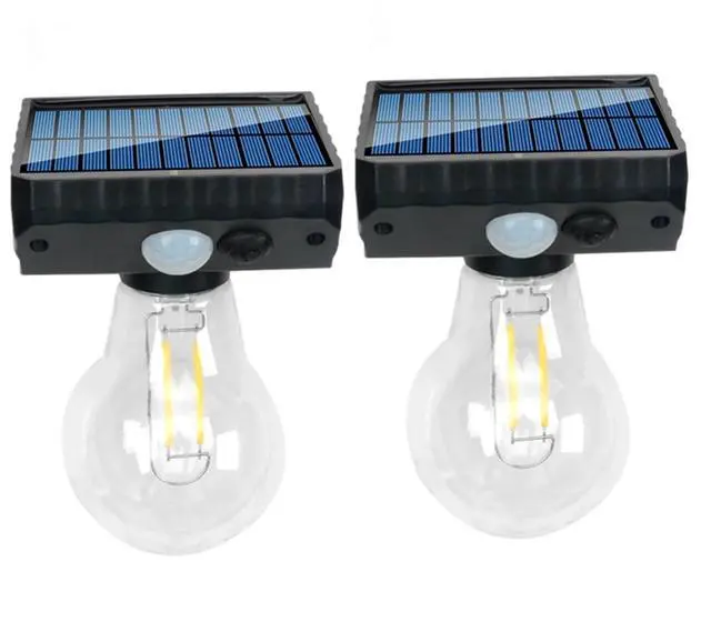 • 2 Pcs Solar Light Bulb, Tungsten Filament, Motion Sensor, Auto On/Off Warm Wall Light, Easy Install, Waterproof for Outdoor Garden, Patio, Yard