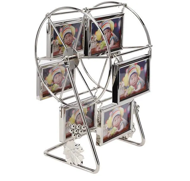 Unique Rotating Wheel Photo Frame Premium Metal Glass Material 360 Rotation Display Stylish Retro Decor for Home Wedding Photography Studio