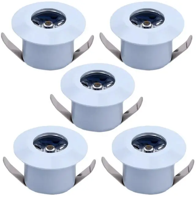 • 5 Pack Mini Recessed Led Lights, 1W Warm White, Under Cabinet Lighting, 1.6 in / 4 Cm Diameter, 1.1 in / 28 Mm Height, 1.1-1.26 in Cut Hole