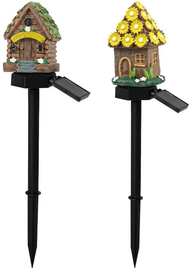 Solar Mushroom Lights for Gardens, Cartoon House Resin Stake Lights, Led Warm Yellow Illumination, Efficient Solar Panel for Yard Decor