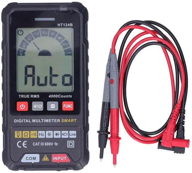 HT124B Digital Multimeter True RMS 4000 Counts Auto Range Smart Voltage Tester for AC DC Voltage Resistance Capacitance, for Industrial Use with Analog Bar Display and NCV