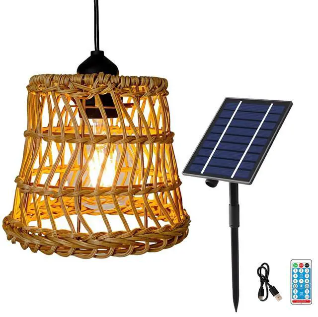 Outdoor Solar Led Wicker Chandelier, Solar-Powered Rattan Pendant Light with Remote Control, Waterproof and Versatile Battery-Operated Light for Home, Dining, and Camping
