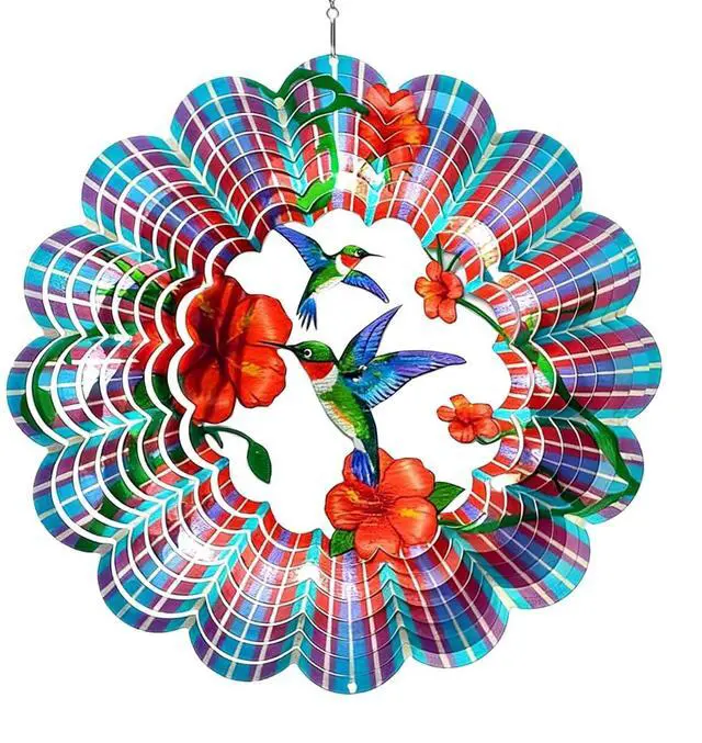 Outdoor Garden & Yard Decor Wind Catcher, 11.8 in Kinetic Art Hanging Ornament, Hummingbird Metal Wind Spinner with Rotating Hook for Patio, Balcony, Deck