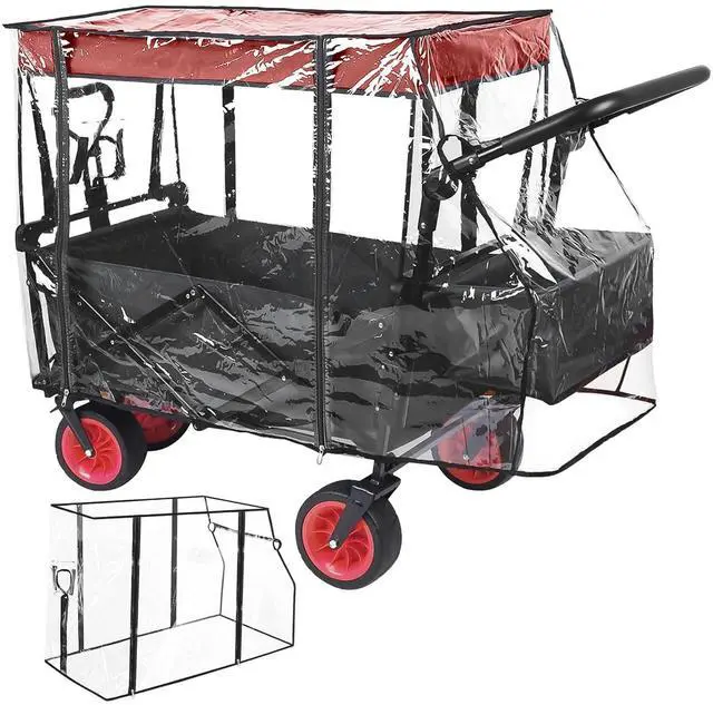 • Transparent Push-Pull Wagon Canopy, Folding Rain and Garden Cart Strolller Trolley Wind Attachment, Accessories Waterproof Wagon Cover, Cover, Protective for