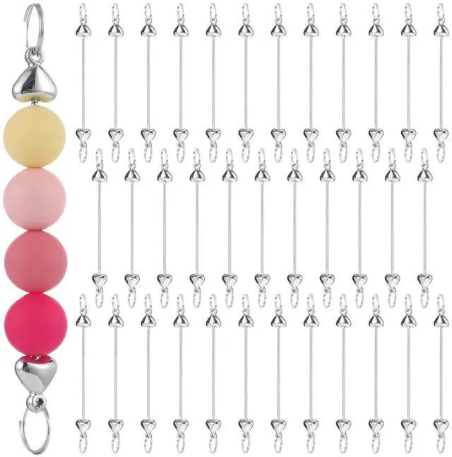 50 Pcs 3.5 In Beadable Keychain, Heart Shaped Silver Diy Keychains, Detachable Acrylic, For Charms And Personalized Gifts
