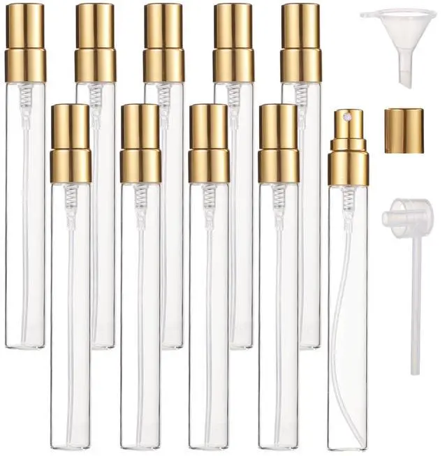 • 10Ml Refillable Spray Bottles 10 Pcs, Travel Glass Bottles With Gold Sprayer, Includes Funnel And Dispenser