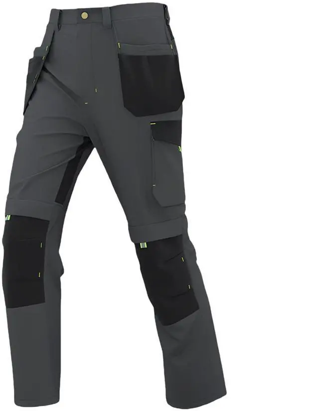 • Gray Men'S Work Pants With Elastic Waist, Multi Pockets Cargo Pants, Reinforced Knees For Construction