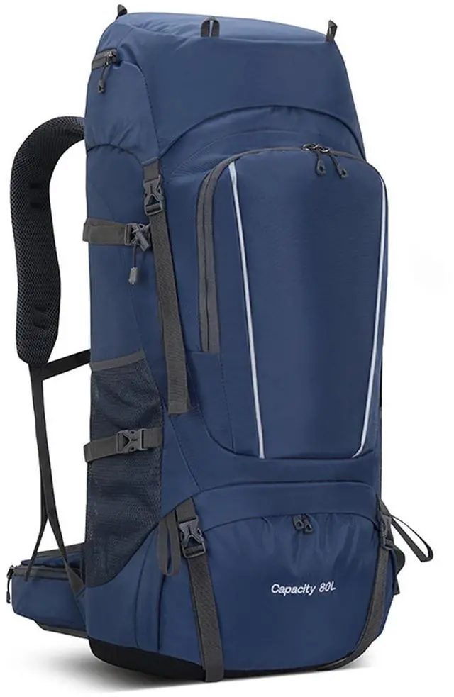 80L Large Capacity Outdoor Backpack Oxford Cloth Hiking with Rain Cover Lightweight Breathable Camping Mountaineering Bag for Trekking Travel Adventures