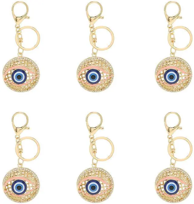 6pcs Big Eyes Keychain, Cute Rhinestone Metal Keychain with Cartoon Design, Rust Durable Bag Charm for Handbag Car Keys Accessories Gift for Women Girls