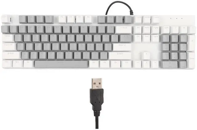 • 104 Key Mechanical Gaming Keyboard, RGB Wired Computer Keyboard with Blue Switch, 28 Backlight Modes, Plug and Play for Linux Gaming PC (White Gray)