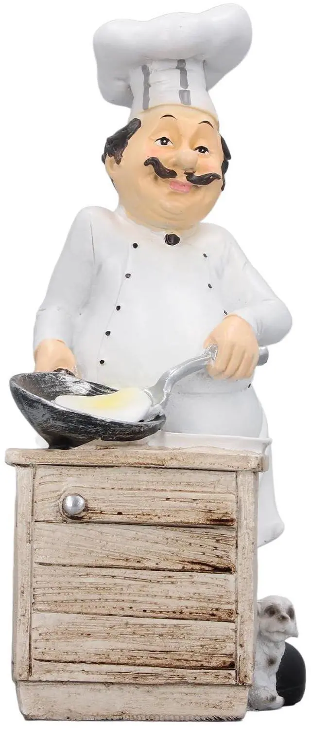 Chef Cooking Figurine, Small Stereoscopic Resin Art Ornament, Cartoon Kitchen Decor Statue with Cookware and Plate, for Kitchen Living Room Bedroom Desk Decoration