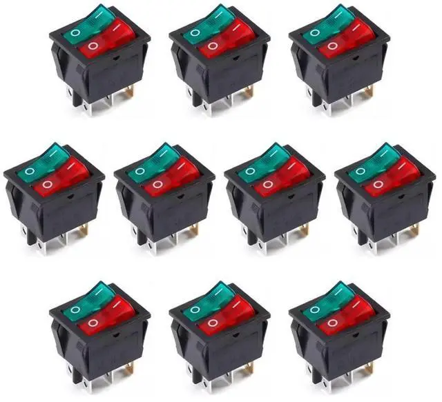 10Pcs KCD6 6-pin 2-Position Red Green Double-Pole Rocker Switch